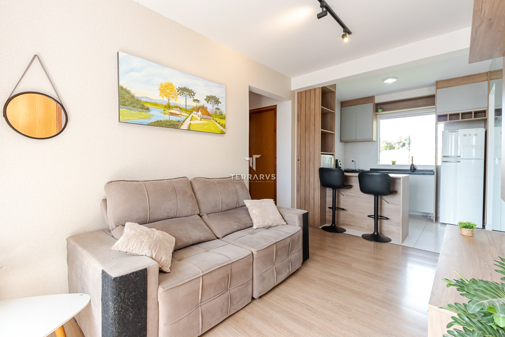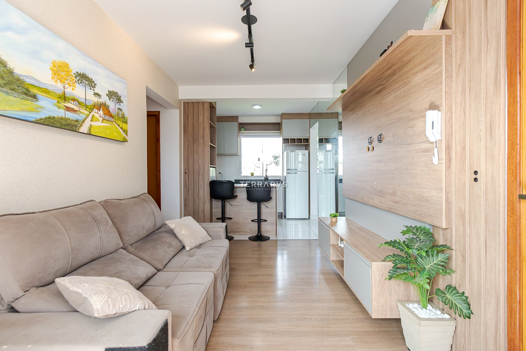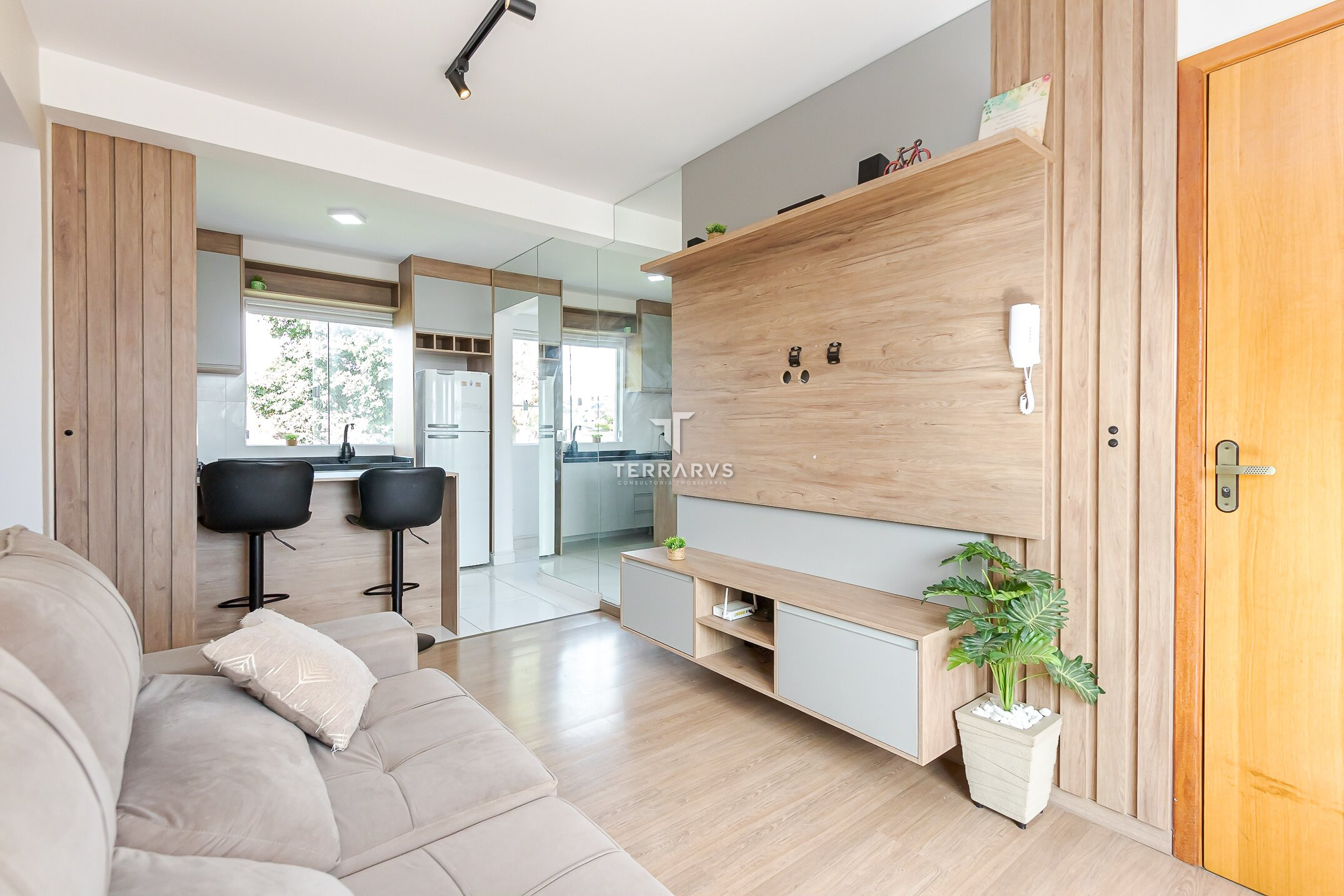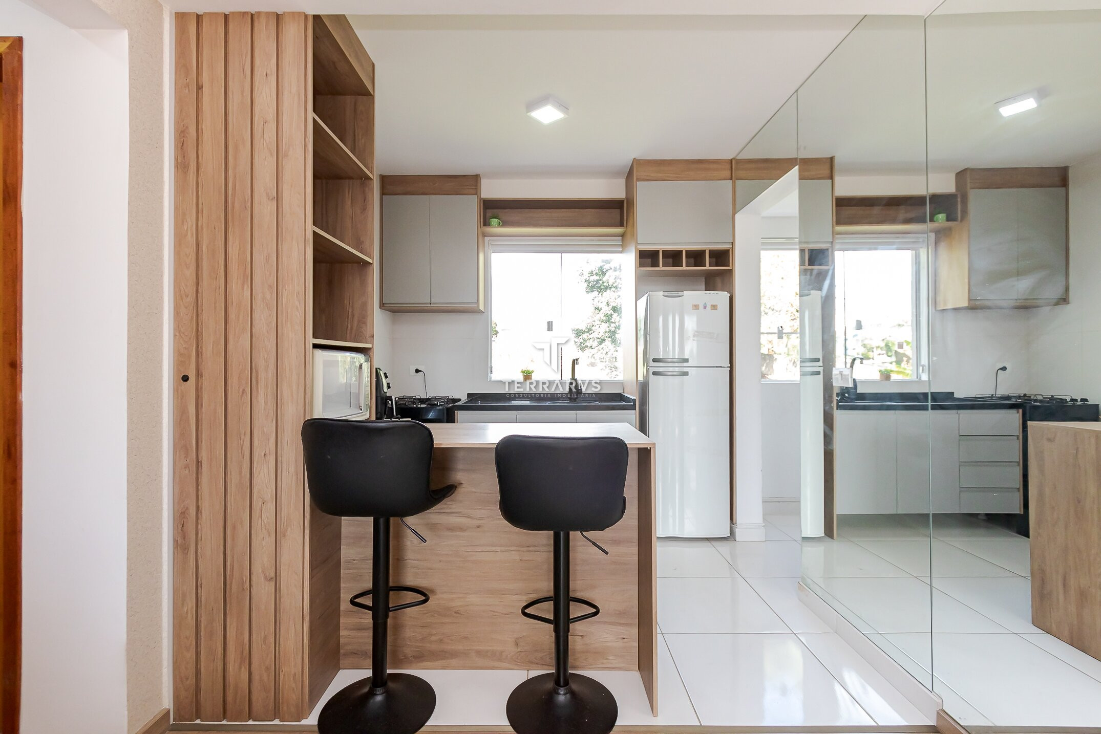 - Ambientes bem planejados e decorados com tom madeira, ripados e espelhos para deixar o apartamento aconchegante, agradável e muito acolhedor.