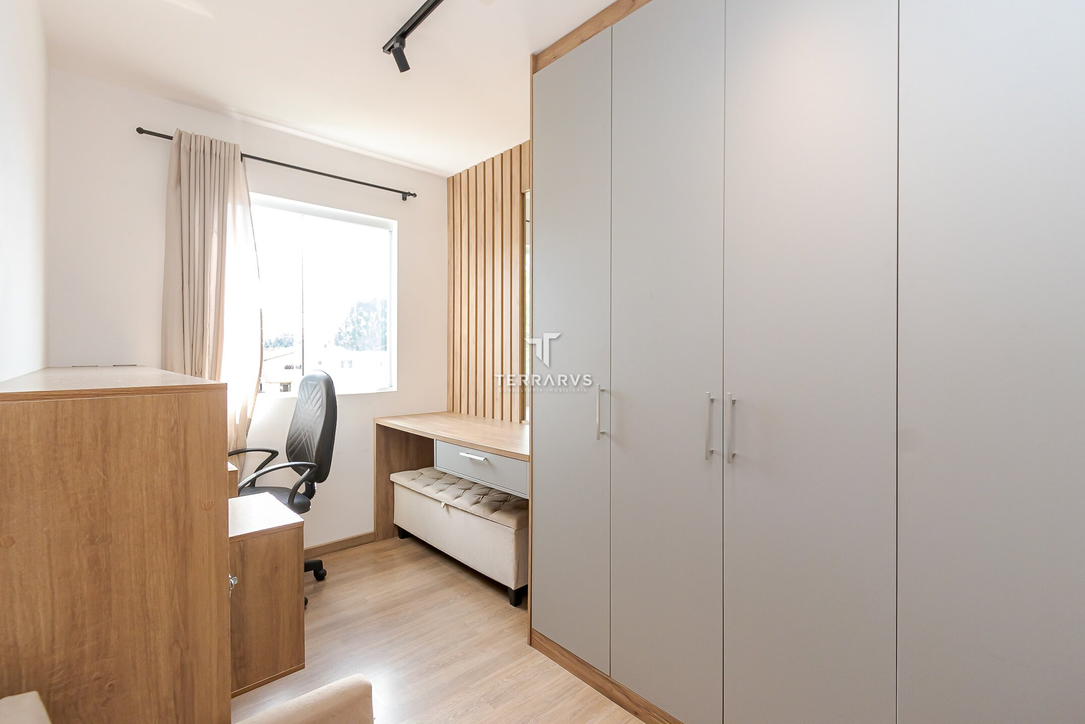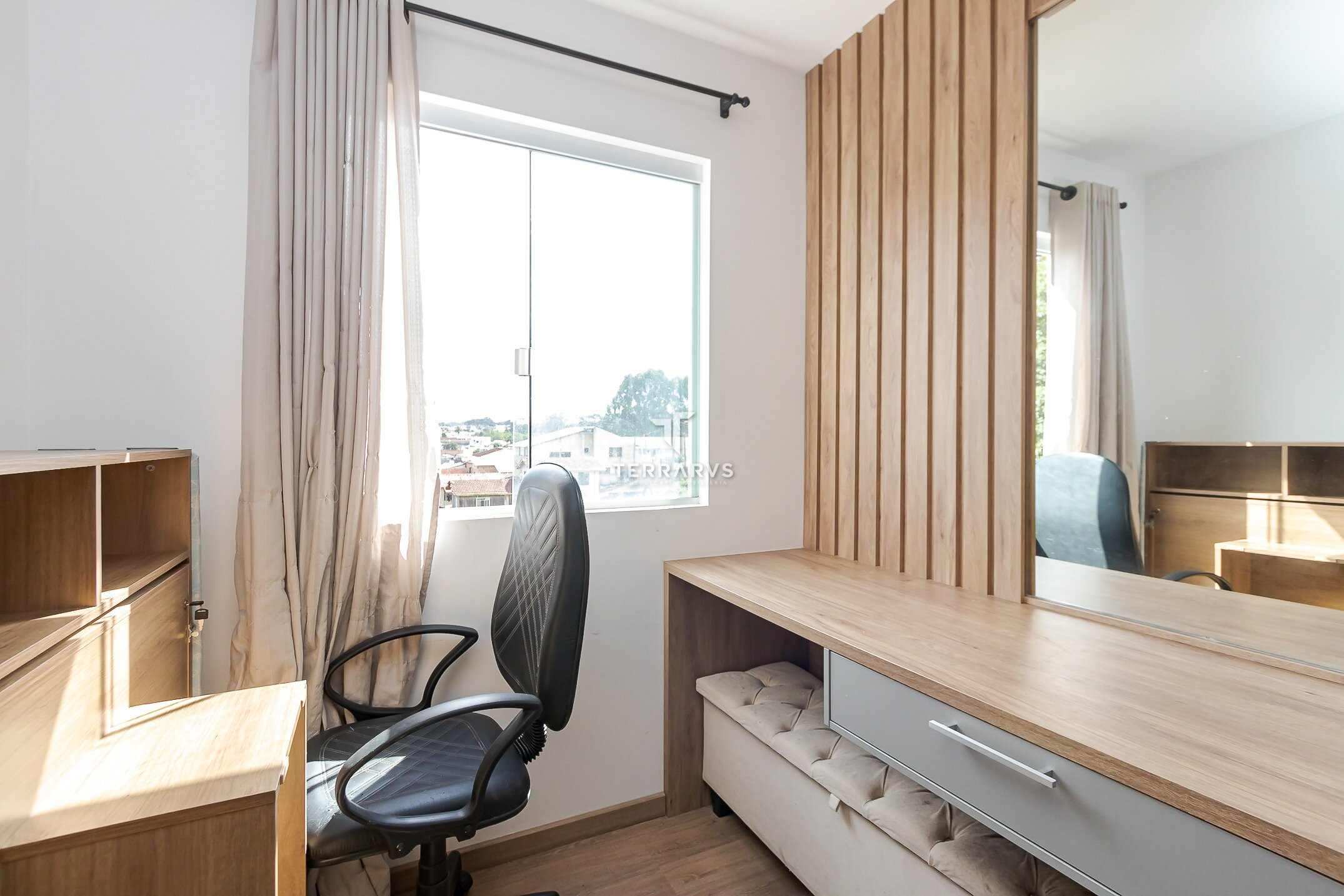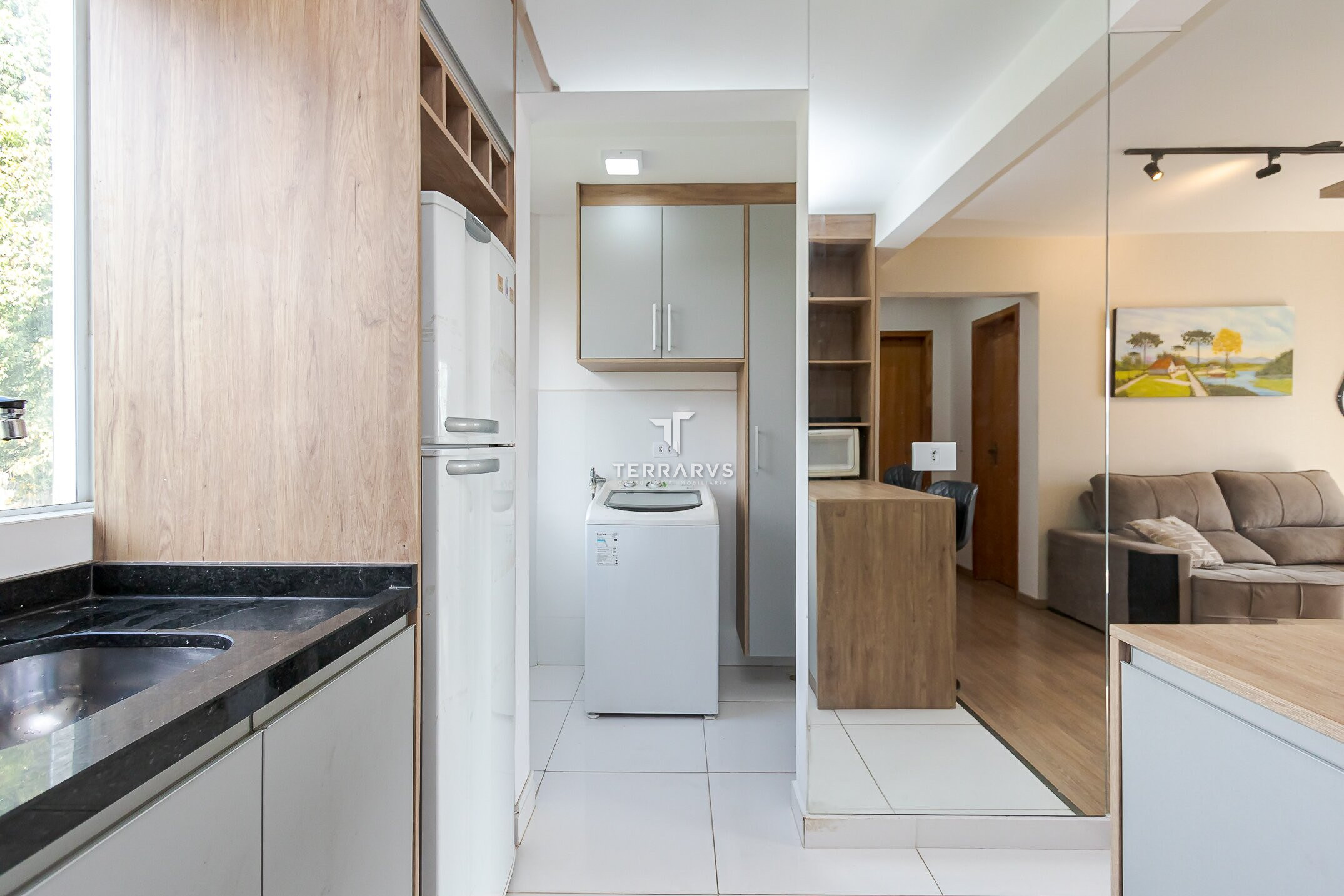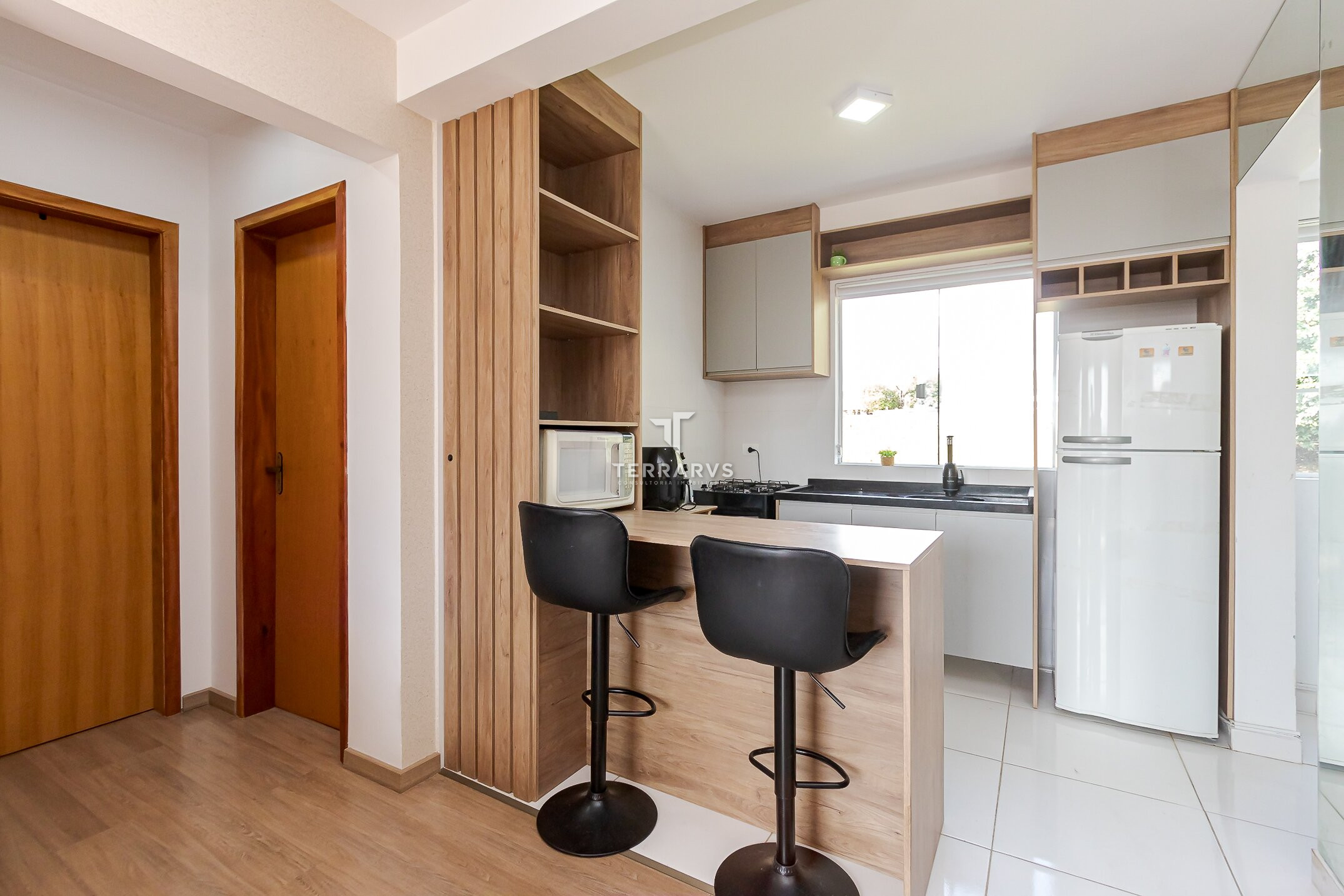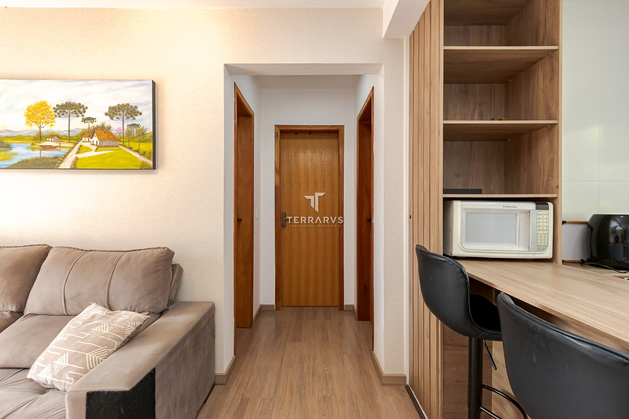 - Ambientes bem planejados e decorados com tom madeira, ripados e espelhos para deixar o apartamento aconchegante, agradável e muito acolhedor.