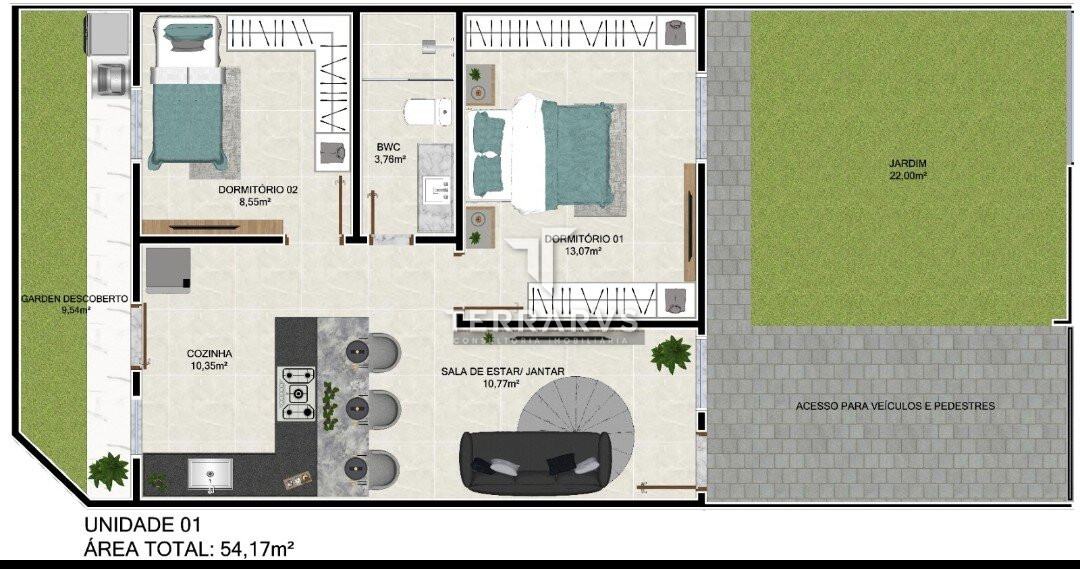 | Área privativa | 54,00 m² |