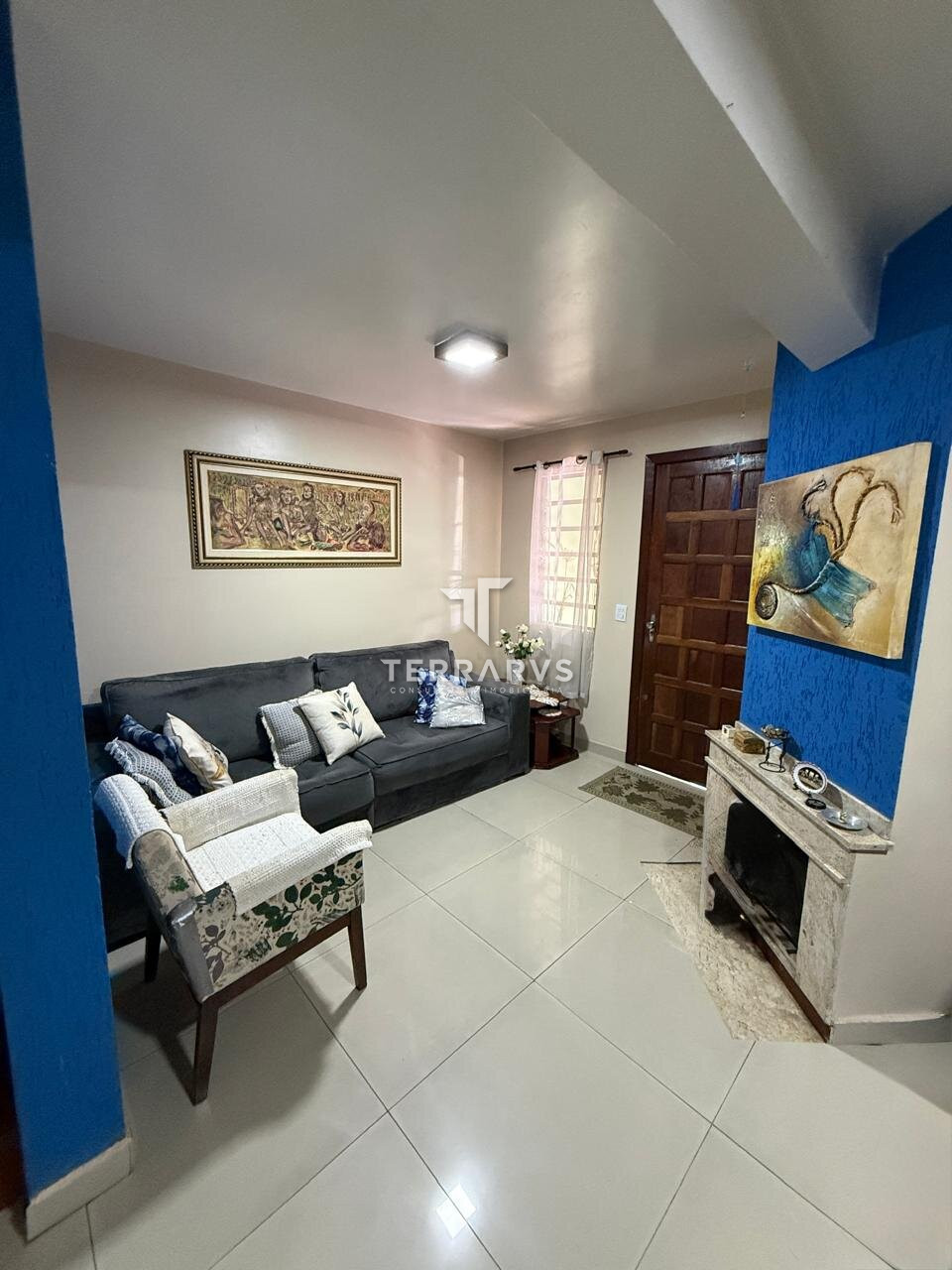 Pavimento terreo sala de estar com 2 ambientes e lareira