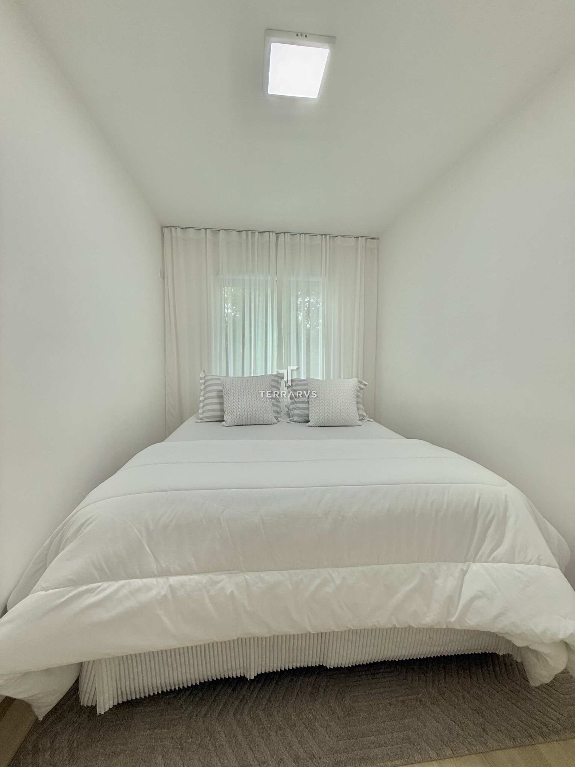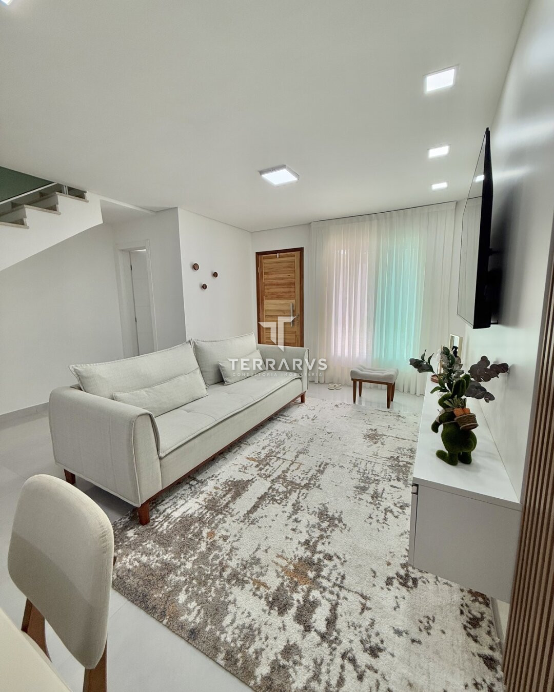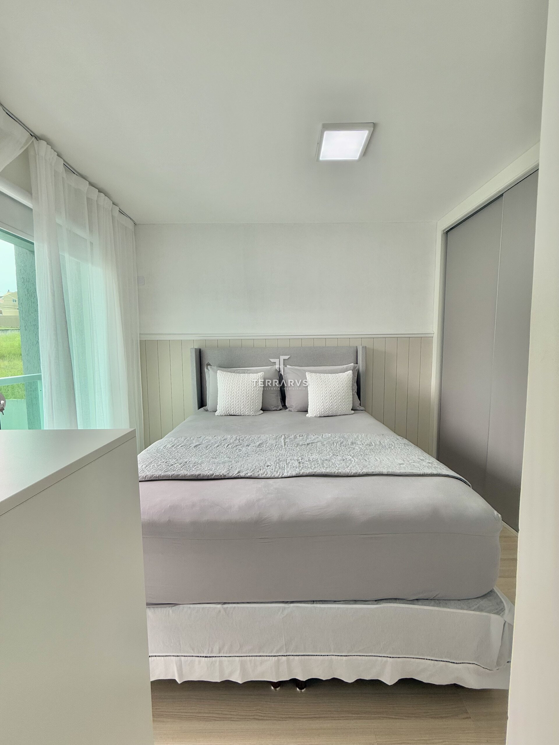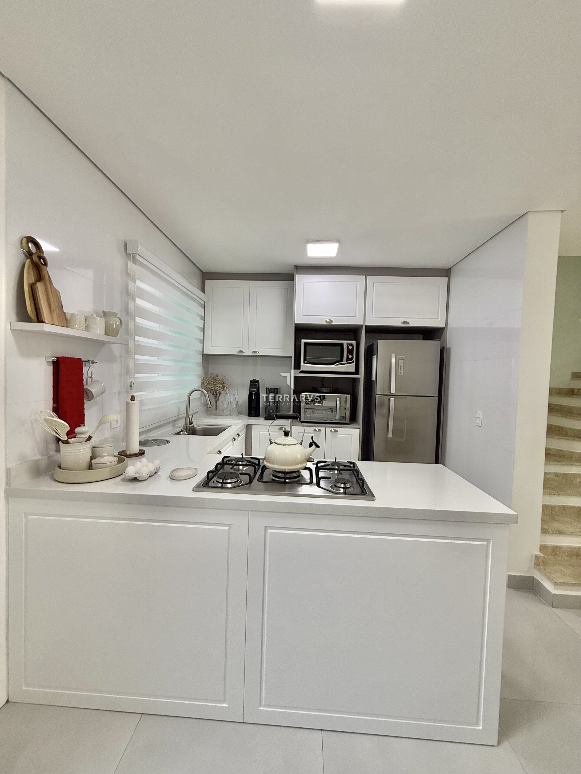 A cozinha possui móveis planejados, assim como a lavanderia, garantindo organização e praticidade no dia a dia. A sala de TV conta com painel planejado e a suíte dispõe de armários sob medida.